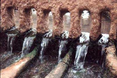 Durch natürlichen Druck werden einfache Laufbrunnen möglich. Dabei wird das Wasser in größerer Höhe gefasst und fließt durch eine Leitung entlang des natürlichen Geländegefälles bis zum Brunnen.