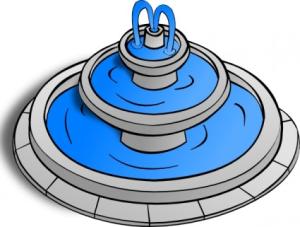 Künstliche Springbrunnen bestehen meist aus Fontänen, Kaskaden, Spritzdüsen und Wasserfällen.